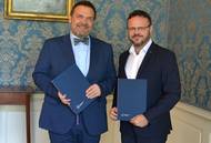 Generální ředitel Českého rozhlasu René Zavoral s ministrem kultury Martinem Baxou podepsali klíčový dokument, který zpř...